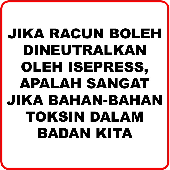 Fungsi ISEPRESS adalah sebagai PENAWAR dan menyingkirkan toksin dalam tubuh seterusnya merawat masalah kesihatan kita.